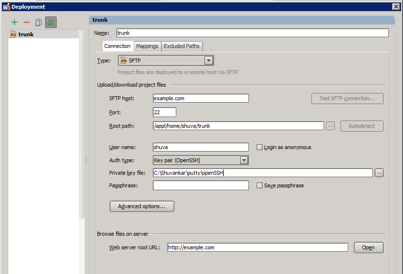 PHPStorm is awesome tool for PHP development. Sometime working in local machine is not enough and we need to deploy our code in server. We can copy the files by some file transfer tool (e.g. FileZilla) but if we need to deploy rapidly even in every save, PHPStorm has fantastic inbuilt functionality to deploy code immediately on every save. Lets see how we can configure it.